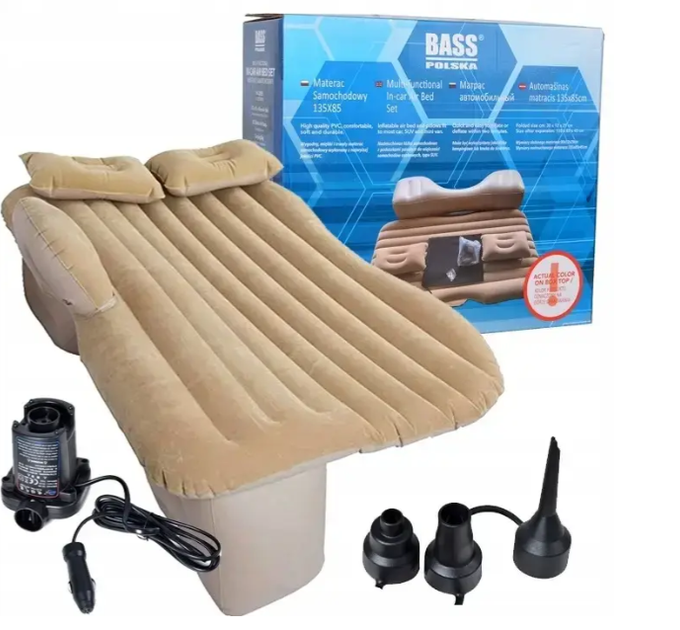 Надувне ліжко в авто Bass Polska 4195-B, ПВХ + велюр, бежевий, з комплектом аксесуарів