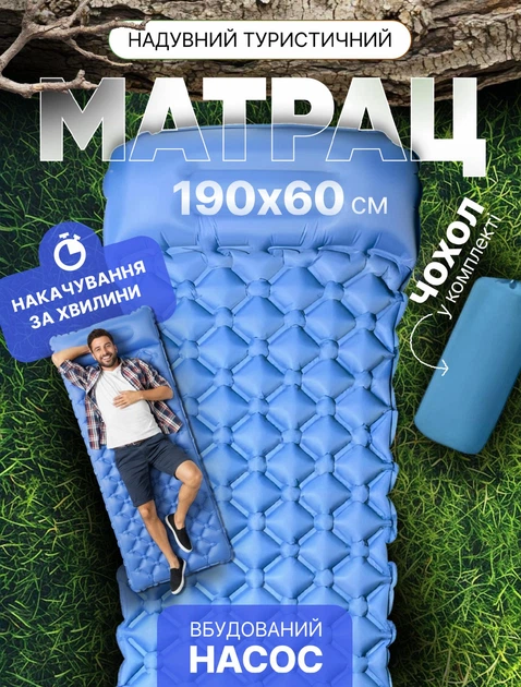 Туристичний матрац килимок з вбудованим ножним насосом подушкою 15 см матрас для сну каремат що самонадувається одномісний і