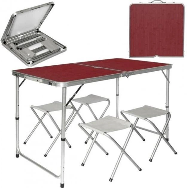 Складаний туристичний стіл з 4 стільцями 12070 см, алюмінієвий у валізі