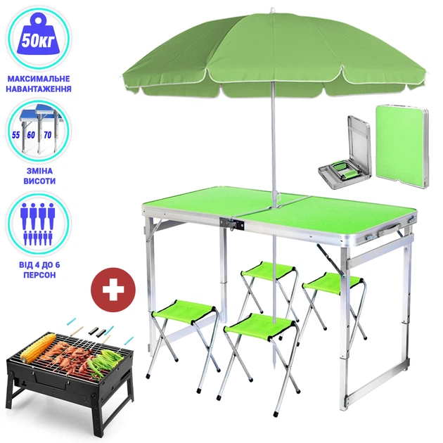 Розкладний стіл чемодан Посилена для пікніка зі стільцями Зелений
