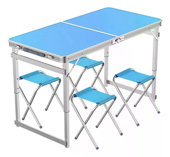Портативний посилений стіл із стільцями 4 шт. для відпочинку та риболовлі Oskar 12060 см, Блакитний