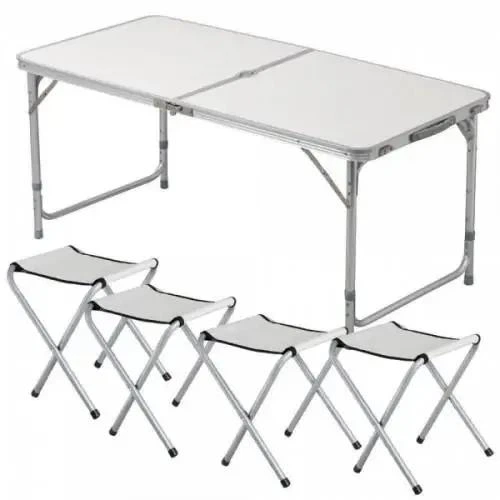 Розкладний стіл для пікніка Складаний з 4 стільцями для кемпінгу Алюмінієвий (63722)