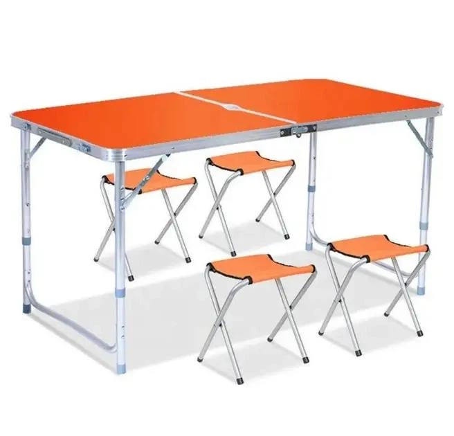 Розкладний стіл-валіза для пікніка зі стільцями 120х60х70 Помаранчевий Складаний + 4 стільці (63691)