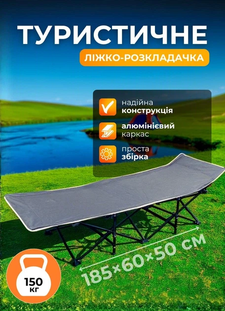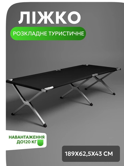 Складана розкладачка туристична 185х60х50 см розкладне ліжко армійське похідне до 150 кг розкладачки в похід кемпінг укриття