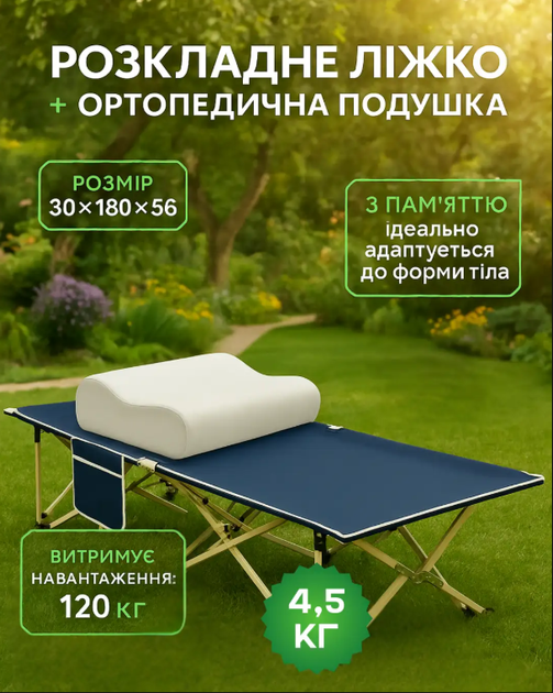 Комплект розкладачка туристична SN27 190x71x35 + ортопедична подушка Memory Foam Pillow 50x29x10/7