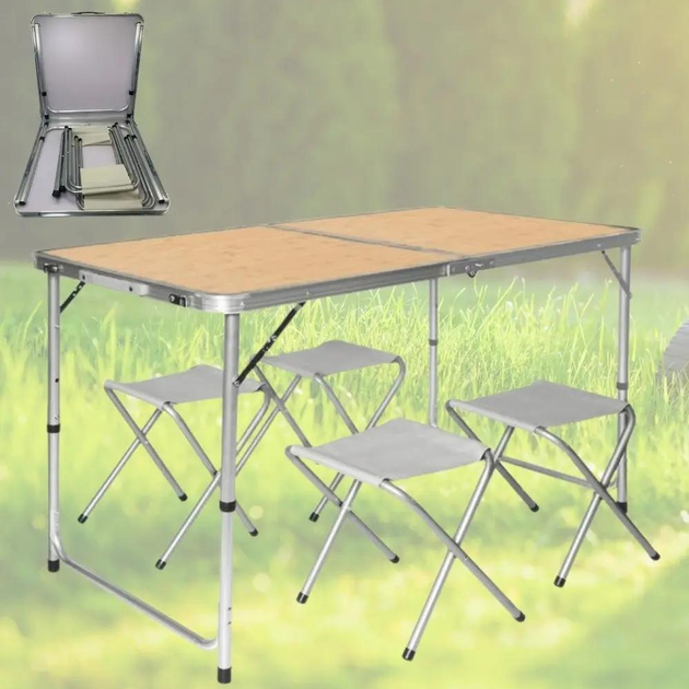 Складаний туристичний столик чемодан та стільці світле дерево для пікніка туризму