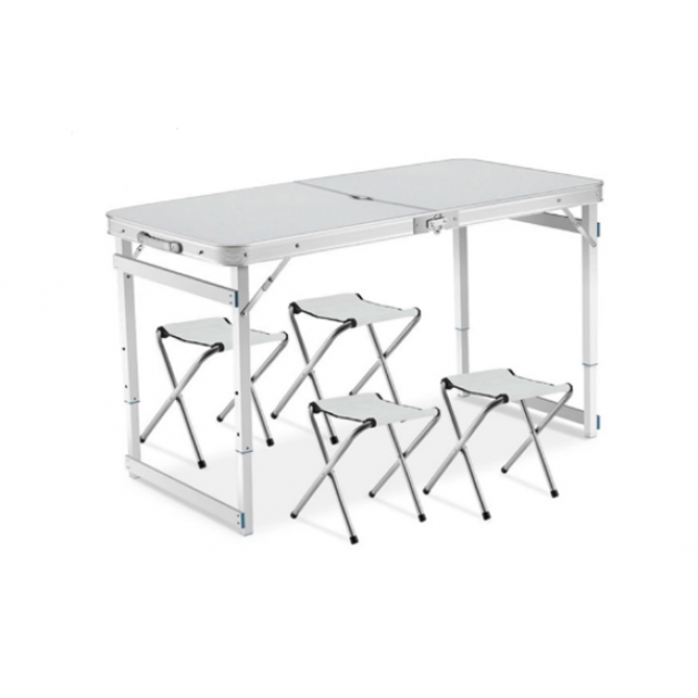 Універсальний туристичний розкладний стіл-трансформер із вбудованими відкидними стільцями, компактний і легкий, Сріблястий (