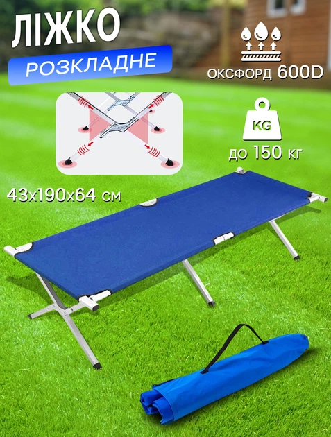 Розкладне ліжко Jet J001 43х190х64 см портативна вулична розкладачка з чохлом Синій