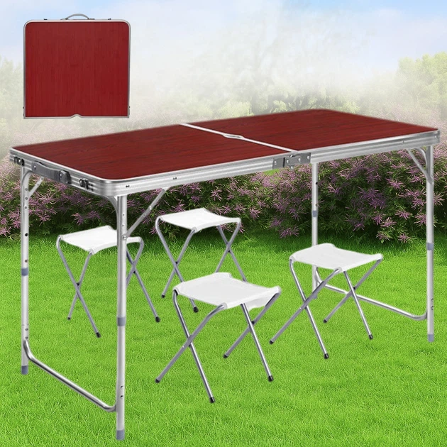 Розкладний стіл для пікніка з 4 стільцями, туристичний алюмінієвий, комплект 1206055 см