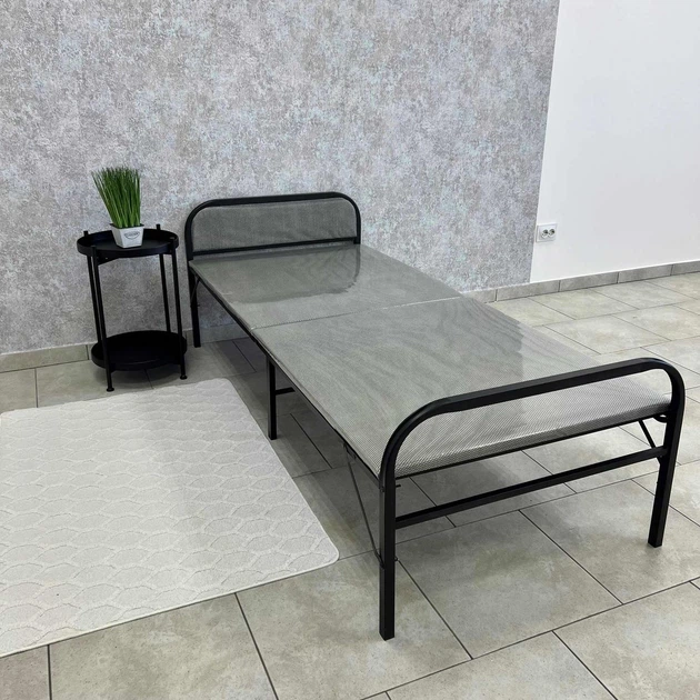 Розкладачка сталева посилена, туристична, армійська з чохлом до 200 кг.