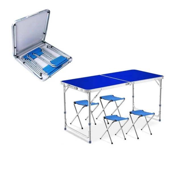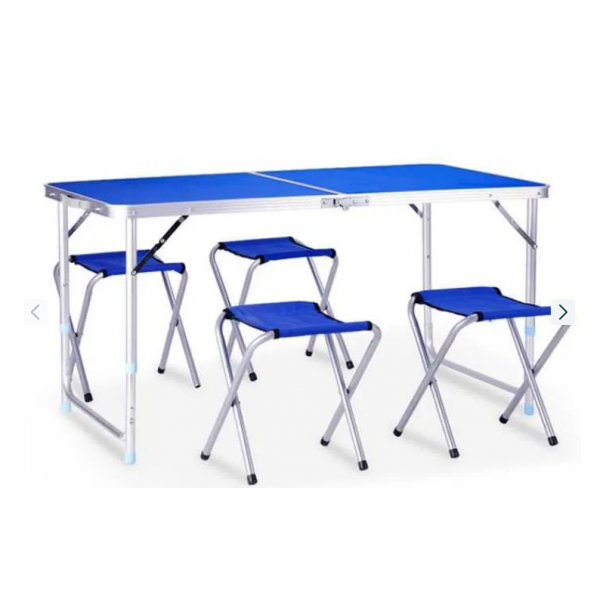 Стіл туристичний розкладний з регулюванням по висоті та чотири стільчики для пікніка, колір синій.