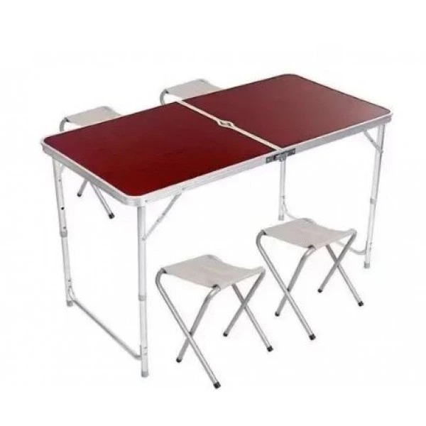 Розкладний стіл туристична валіза набір з 4 стільцями Folding Table для пікніка риболовлі дачі та кемпінгу 120х60 см Коричне