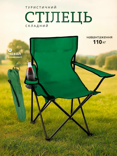 Складаний стілець для туризму пляжу кемпінгу дачі відпочинку на природі з підлокітниками навантаженням до 100 кг 76x51x50 см