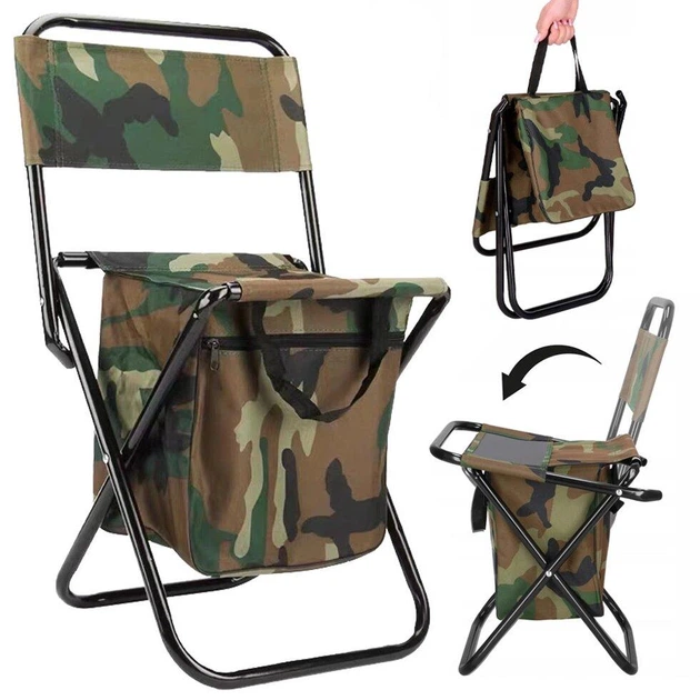 Складаний стілець для риболовлі з сумкою 60х35х26 см, камуфляж, похідні меблі до 110 кг для туризму
