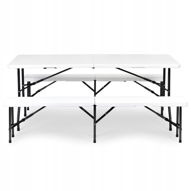 Розкладний стіл садовий для пікніка 180см + 2 лавки 180см білий Польща JDT-0845260