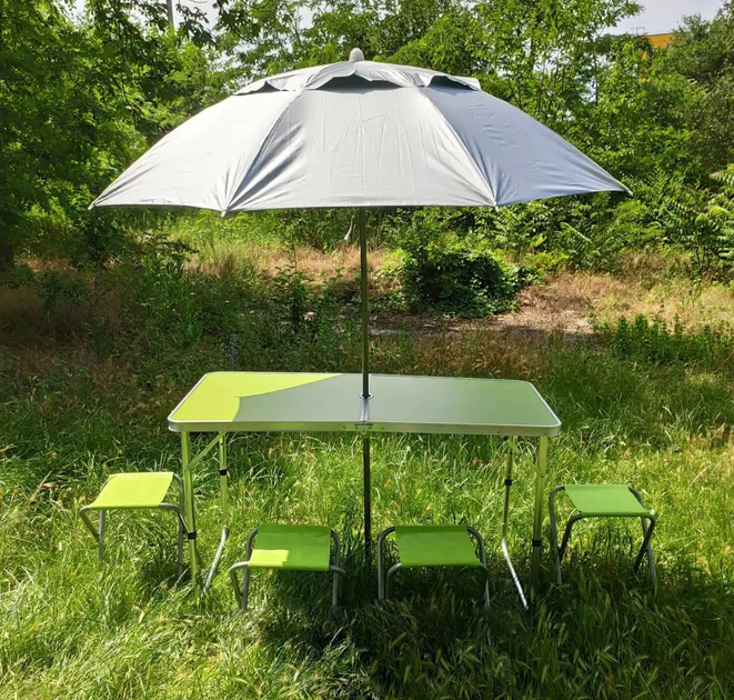 Складаний стіл-валіза з компактним парасолькою та набором з 4 стільців, Салатова стільниця