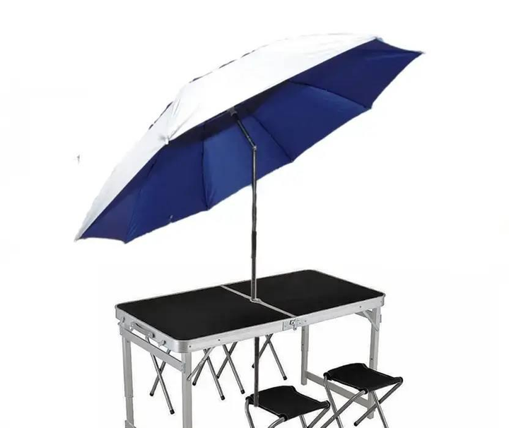 Складаний стіл-валіза з комплектом стільців 4 шт. та парасолькою для пікніка, Чорна стільниця