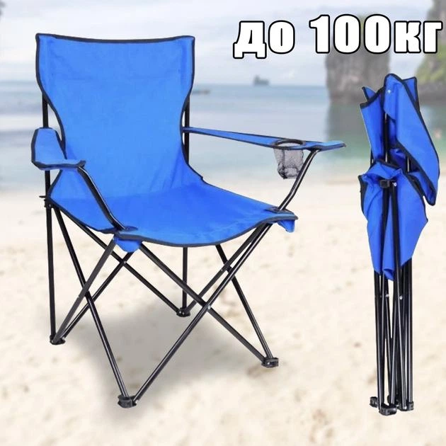 Туристичний складний стілець з підлокітниками та підсклянником, Синій