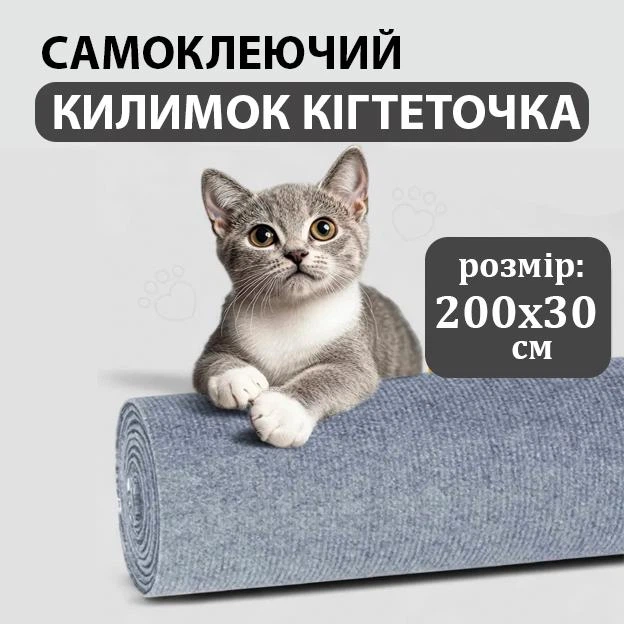 Антикіготь Захисне покриття для дивану меблів та шпалер Cat Protect Кігтеточка самоклеюча 30х200 см Сірий 1 шт