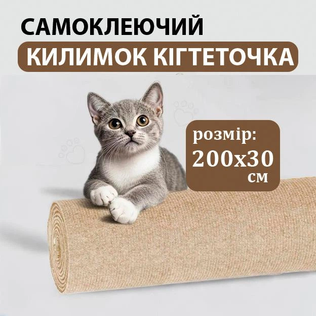 Антикіготь Захисне покриття для дивану меблів та шпалер Cat Protect Кігтеточка самоклеюча 30х200 см Бежевий 1 шт