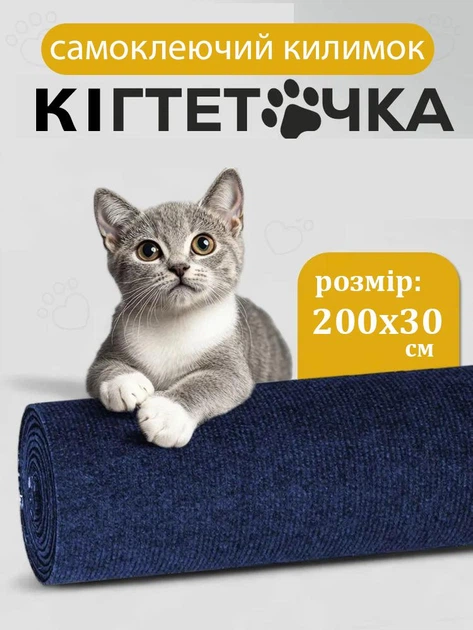 Антикіготь Захисне покриття для дивану меблів та шпалер Cat Protect Кігтеточка килимок самоклеюча 30х200 см Темно синій 1 шт