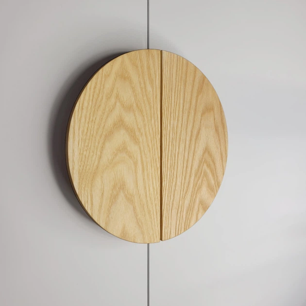 Ручка меблева з натурального дерева, геометрична, коло, накладна, дизайнерська RAD 15-180 Дуб, Білий