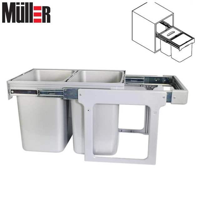 Відро для сміття Muller Widder 2х16л висувне кухонне, Сіре (0063)