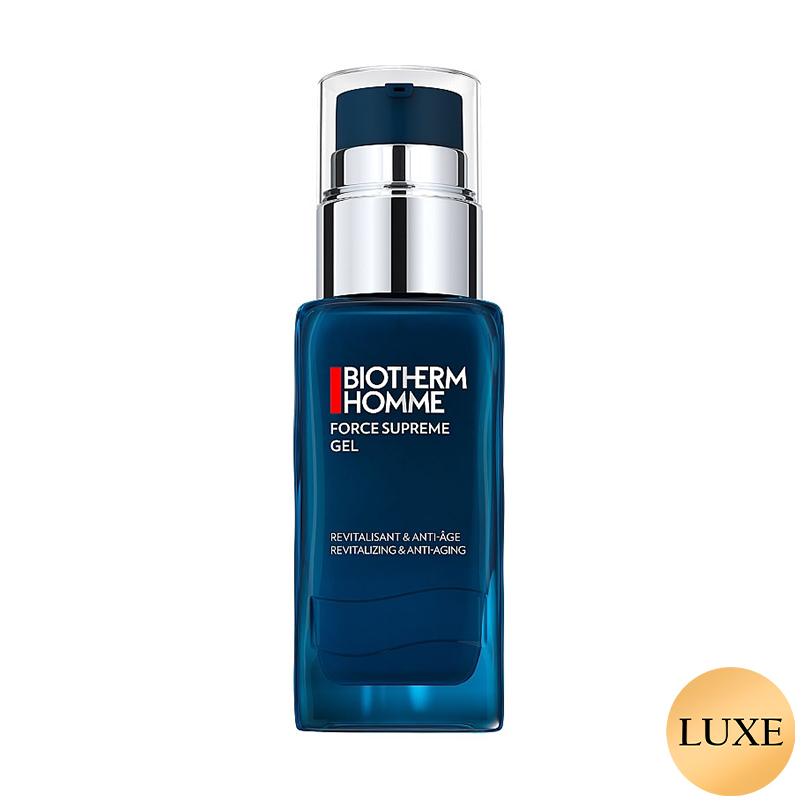 Чоловічий антивіковий гель для обличчя Biotherm Homme Force Supreme Anti-Aging Gel відновлення та зволоження, з блакитними в