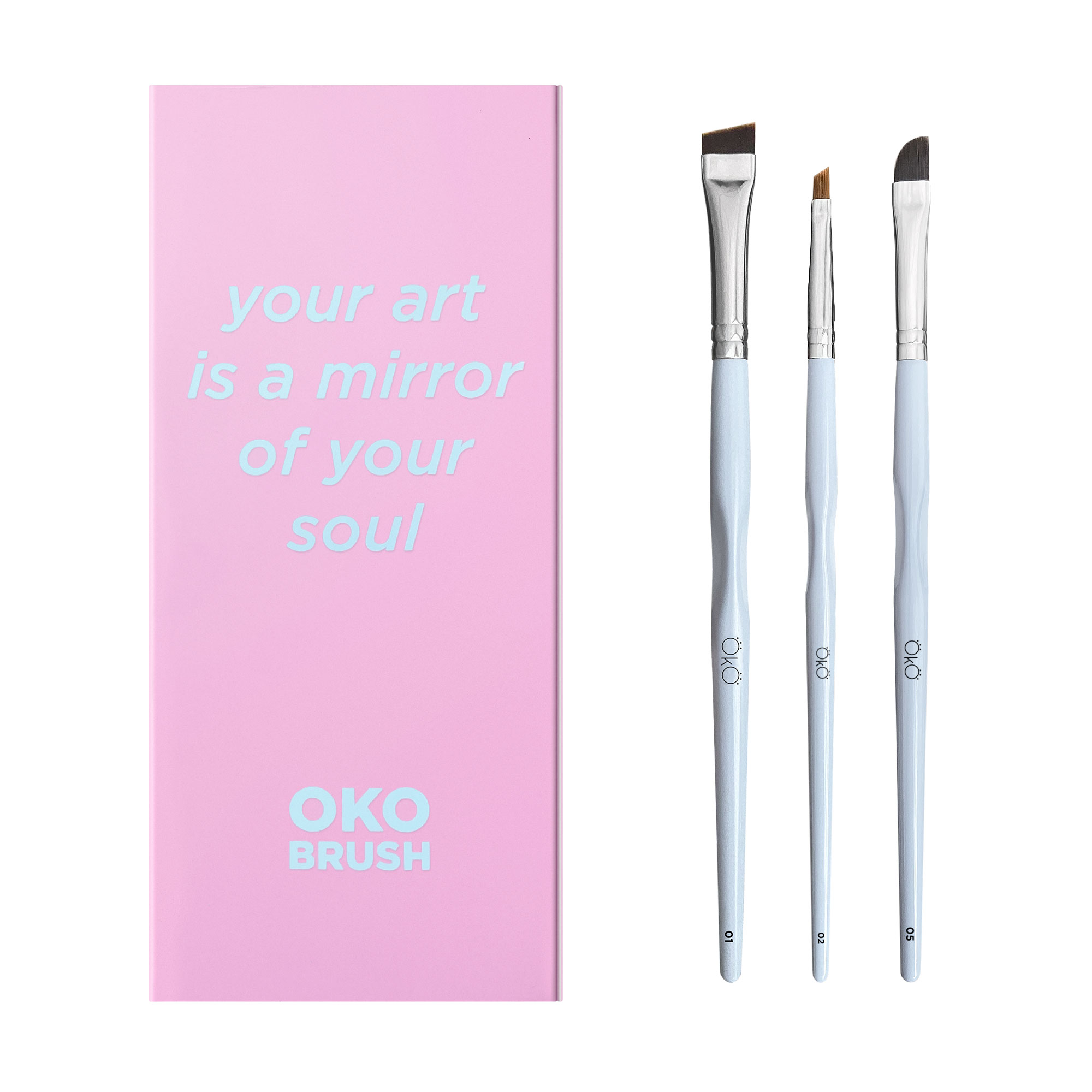 Набір пензликів для макіяжу OkO Lash & Brow Your Art Is A Mirror Of Your Soul, 3 шт