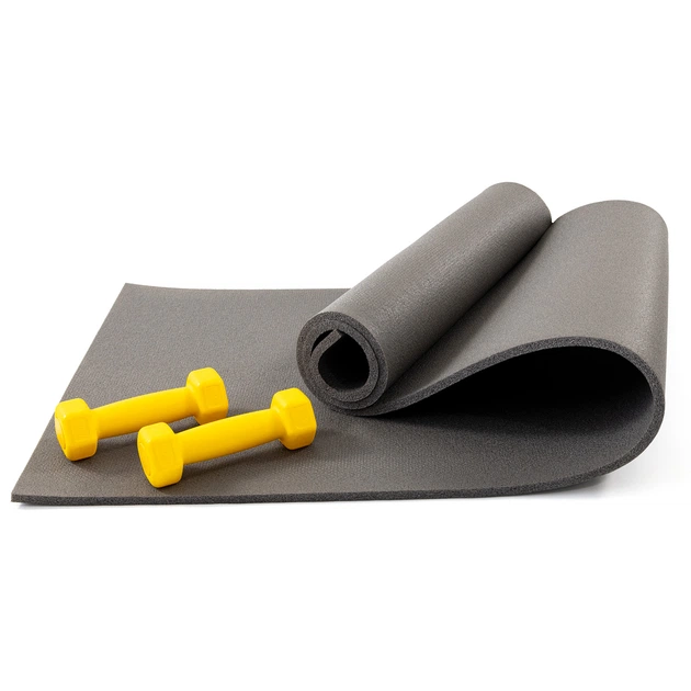 Килимок для йоги, фітнесу, спорту (йога мат, каремат) + гантелі для фітнесу 2шт по 0.5кг OSPORT Set 67 (n-0097) Сіро-жовтий