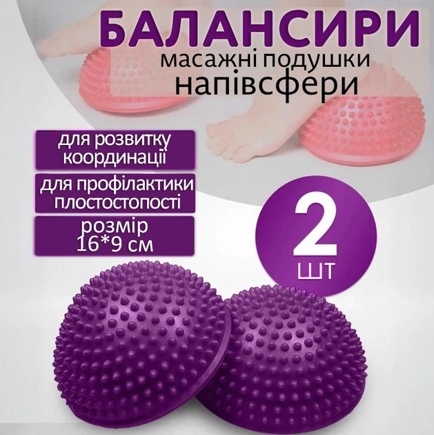 Напівсфера з шипами масажний ортопедичний балансир фітнесу та спорту 16 см фіолетовий набір 2 шт