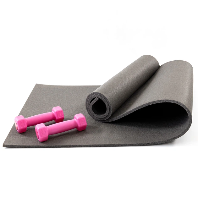 Килимок для йоги, фітнесу, спорту (йога мат, каремат) + гантелі для фітнесу 2шт по 0.5кг OSPORT Set 67 (n-0097) Сіро-рожевий