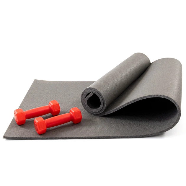 Килимок для йоги, фітнесу, спорту (йога мат, каремат) + гантелі для фітнесу 2шт по 0.5кг OSPORT Set 67 (n-0097) Сіро-червони