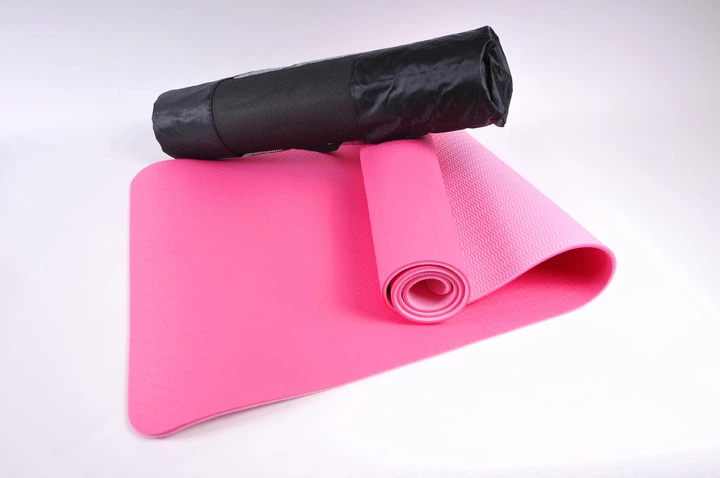 Килимок для йоги та фітнесу TPE+TC 6мм двошаровий + Чохол рожевий
