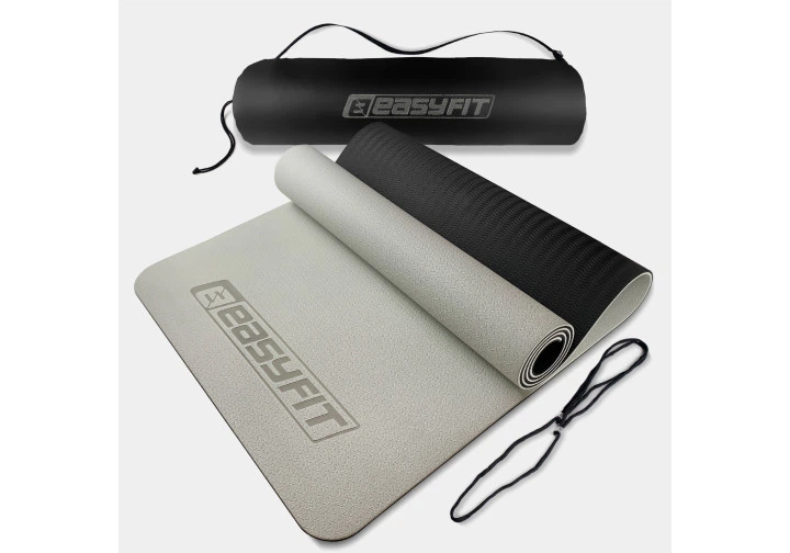 Килимок для йоги та фітнесу EasyFit TPE+TC 6 мм двошаровий + Чохол сірий з чорним