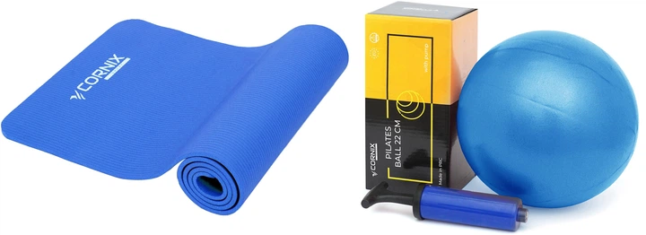 Набір Килимок спортивний Cornix XR-0009 NBR 183 х 61 х 1 см для йоги та фітнесу Синій + М'яч для пілатесу, йоги, реабілітаці