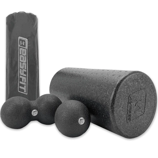 Масажний набір EasyFit 2005-XL 3-в-1, EPP-піна, чорний - ролик + 2 м’ячі для йоги, фітнесу, реабілітації
