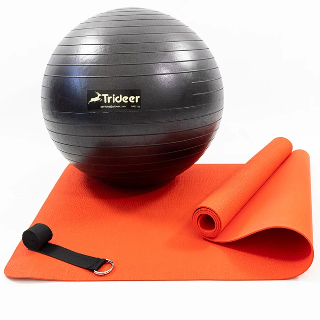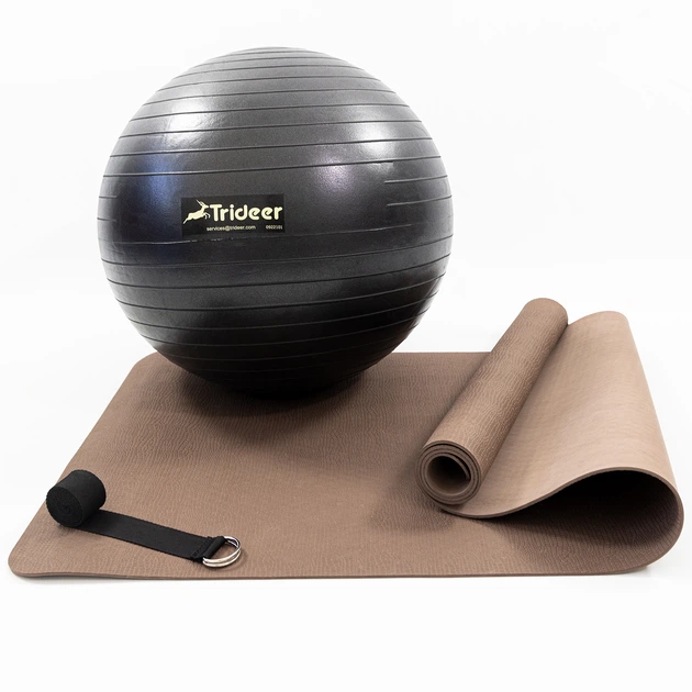 Килимок для йоги та фітнесу (каремат) + фітбол м'яч для фітнесу 55 см + ремінь для йоги OSPORT Set 94 (n-0124) Коричнево-чор