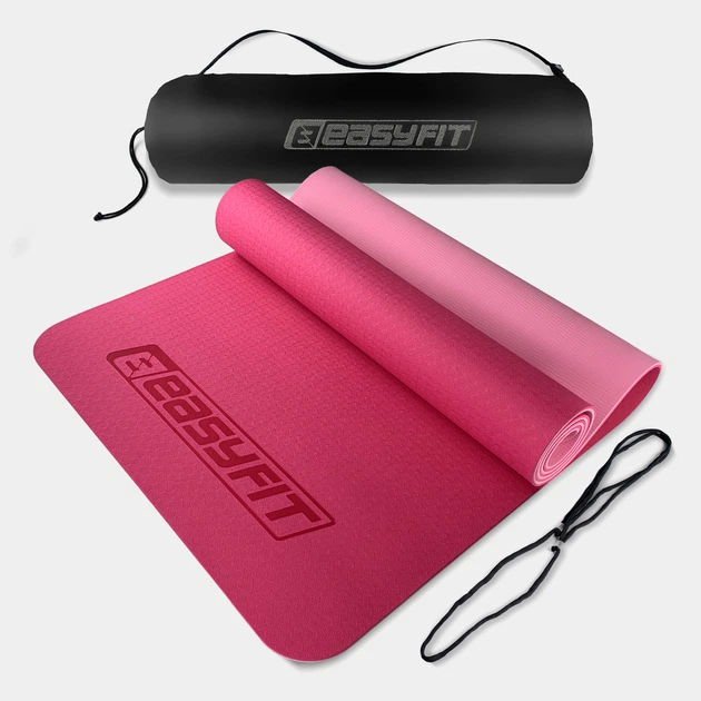 Килимок для йоги та фітнесу EasyFit TPE+TC 6 мм двошаровий + Чохол рожевий
