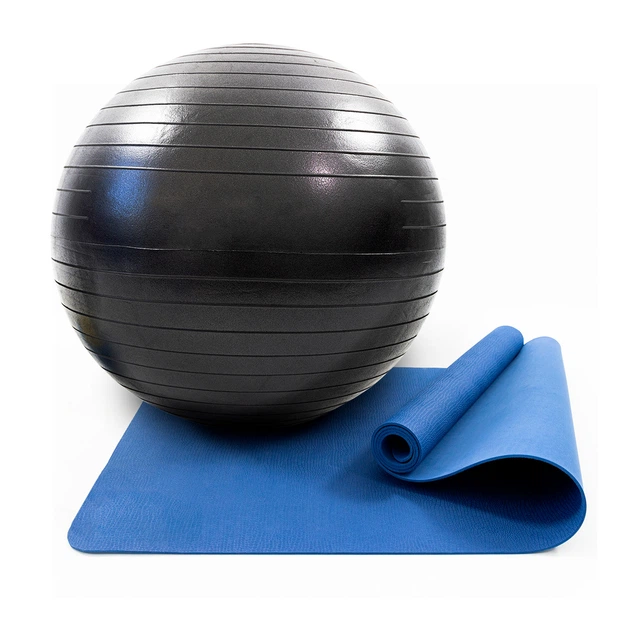 Килимок для йоги та фітнесу (каремат) + фітбол м'яч для фітнесу, вагітних 75 см OSPORT Set 92 (n-0122) Синьо-чорний
