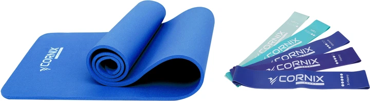 Набір Килимок спортивний Cornix NBR 183 х 61 х 1 см + Гумки для фітнесу CorniX Mini Power Band набір 5 шт 1-20 кг (XR-0009-X