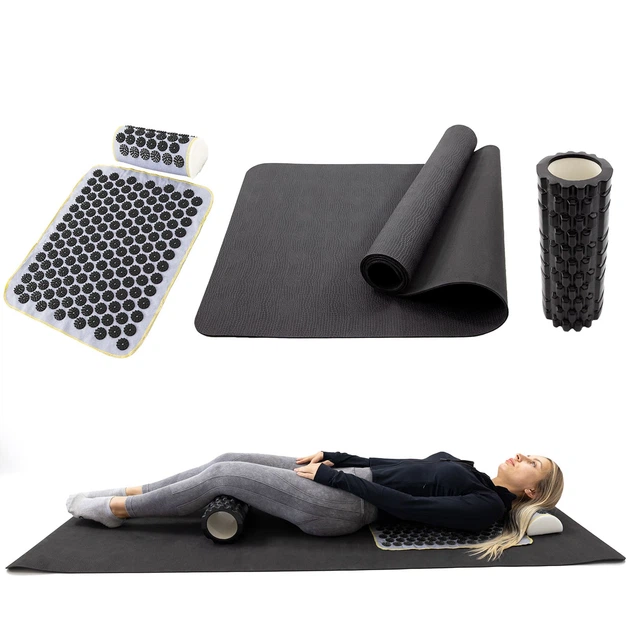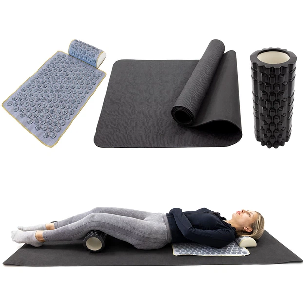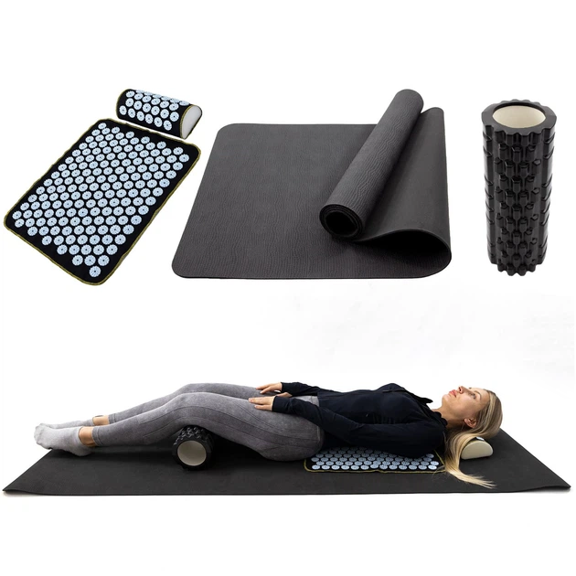 Килимок для йоги + аплікатор кузнєцова + масажний ролик, валик для масажу мфр рол OSPORT Set 111 (n-0144-01-0118-01)