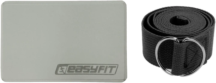 Набір Блок для йоги EasyFit Сірий EF-1818-GY (56002975) + Ремінь для йоги та розтяжки EasyFit EF-1830-BK Чорний (56001300)