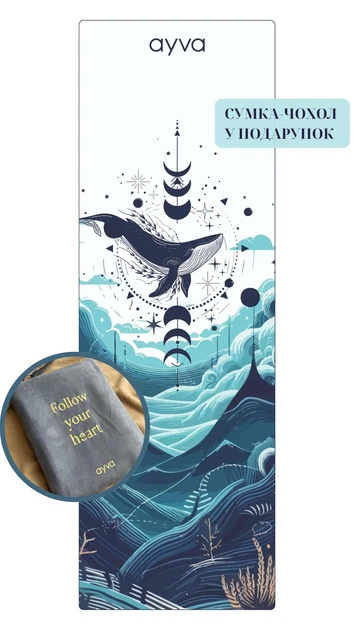 Килимок для йоги та спорту AYVA 183х61х0,15 см Ocean Soul Travel + чохол у подарунок