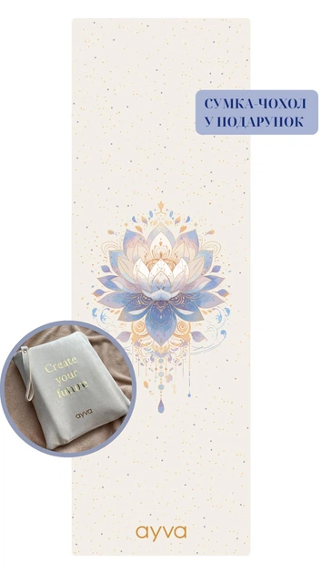 Килимок для йоги та спорту AYVA 183х61х0,15 см Lotus Cream Travel + чохол у подарунок