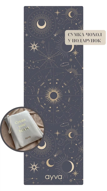 Килимок для йоги та спорту AYVA 183х61х0,15 см Astro Travel + чохол у подарунок