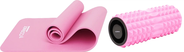 Набір Килимок спортивний Cornix NBR 183 x 61 x 1 см для йоги та фітнесу Pink + Масажний ролик Cornix EVA 33 x 14 см (валик,