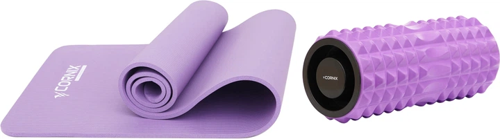 Набір Килимок спортивний Cornix NBR 183 x 61 x 1 см для йоги та фітнесу Violet + Масажний ролик Cornix EVA 33 x 14 см (валик
