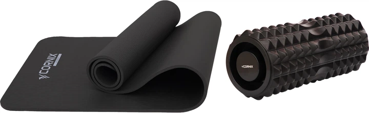 Набір Килимок спортивний Cornix NBR 183 x 61 x 1 см для йоги та фітнесу Black + Масажний ролик Cornix EVA 33 x 14 см (валик,