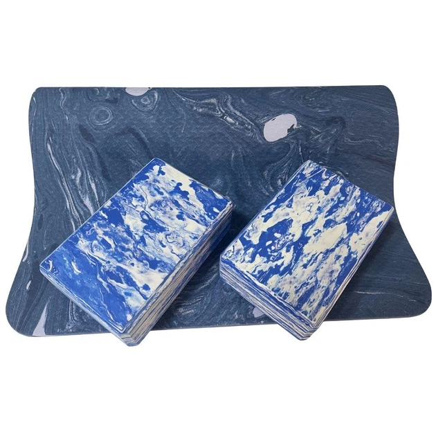 Набір для йоги та фітнесу, килимок для йоги + 2 блоки для йоги (цегла-пропс) біло-синій